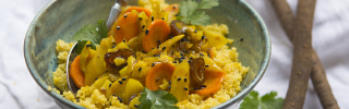 Bei reduzierter Temperatur etwa 15–20 Min. mit geschlossenem Deckel einkochen, sodass eine cremige Sauce entsteht und das Gemüse bissfest gegart ist. Mit Salz, Pfeffer und evtl. etwas von dem restlichen Zitronensaft abschmecken. Hirse auf Schalen verteilen und das Schwarzwurzel-Möhren-Curry darauf geben. Mit Koriander bestreuen und genießen.